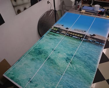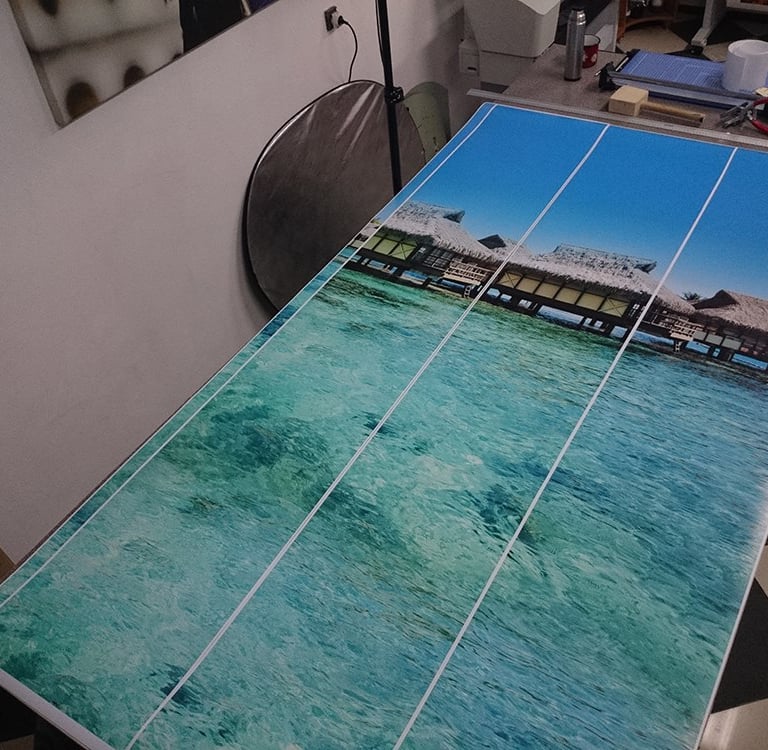 Zastosowana technika pozwoliła nie tylko odświeżyć wizualnie przestrzeń, ale także nadać jej indywidualny charakter. Laminowanie zabezpiecza powierzchnię wydruku, a plexi zapewnia trwałość oraz estetyczne, nowoczesne wykończenie. Całość stanowi przykład praktycznego wykorzystania fotografii jako elementu użytkowego, a nie wyłącznie dekoracyjnego obrazu na ścianie.